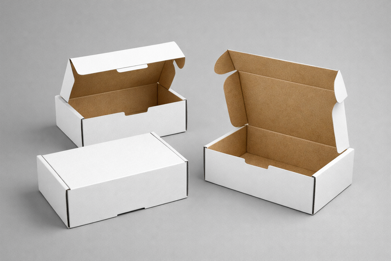 A RETT mailer (Roll End Tuck Top) features a one-piece design with a hinged lid and side panels that roll inward and tuck to create double-layer side walls. This construction provides good stacking strength and a clean presentation, making RETT mailers a popular choice for subscription boxes, e-commerce shipments, kits, literature, and lightweight to moderately heavy items. They assemble quickly without tape and offer a professional, retail-ready appearance.